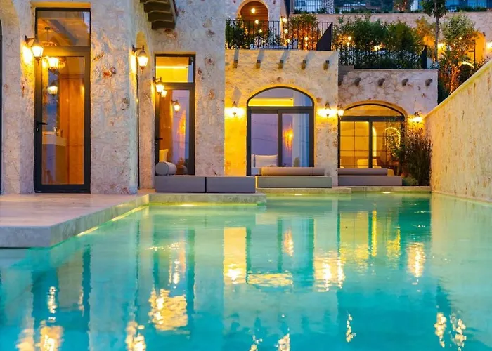 Villaen har et fuldt udstyret køkken til selvforplejning. Kalkan-2 busstation kan nås inden for 15 minutters gang fra denne villa. Jacuzzi, en sauna og sauna faciliteter tilbydes til afslapning.